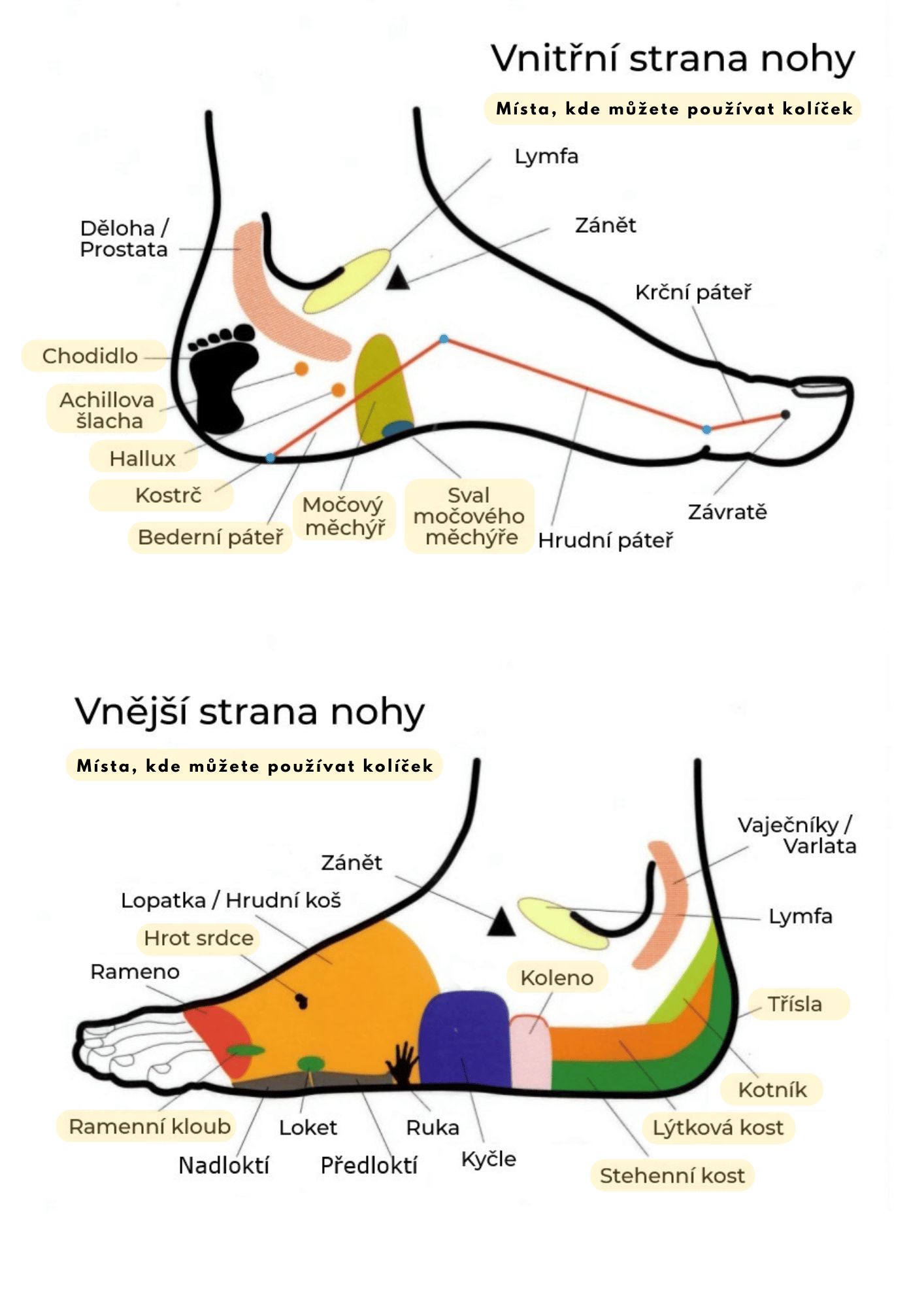 Reflexní body z vnitřní a vnější strany nohy. Ať je zima, nebo léto tato část nohy trochu zaostává a jen ten, kdo se nohám vědomě věnuje, je schopný i tyto části nohou řešit. Neopomíjejte tuto stranu nohy.